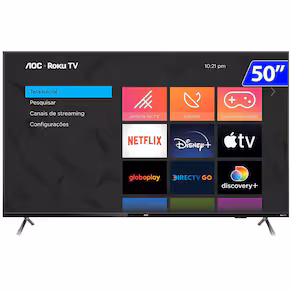 A AOC Roku TV 50S519 combina a qualidade da marca AOC com o sistema operacional intuitivo Roku, proporcionando uma experiência de entretenimento simplificada. Com uma tela de 50 polegadas e resolução 4K, oferece imagens nítidas e detalhadas. A integração