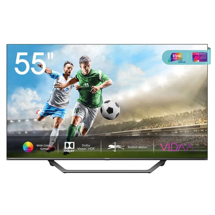 A Hisense 55A7500F é reconhecida por sua combinação de preço acessível e qualidade de imagem. Com resolução 4K, suporte para HDR10 e tecnologia DTS Studio Sound, oferece uma experiência audiovisual satisfatória. Seu design elegante e recursos inteligentes